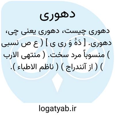 دهوری. [ دَهَْ وَ ری ی ] ( ع ص نسبی ) منسوباً مرد سخت. ( منتهی الارب ) ( از آنندراج ) ( ناظم الاطباء ).