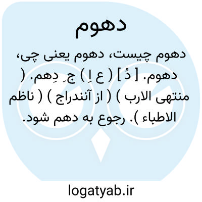 لغت نامه دهخدا دهوم. [ دُ ] ( ع اِ ) ج ِ دِهم. ( منتهی الارب ) ( از آنندراج ) ( ناظم الاطباء ). رجوع به دهم شود.