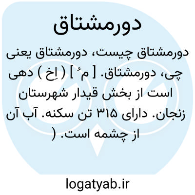 دورمشتاق. [ م ُ ] ( اِخ ) دهی است از بخش قیدار شهرستان زنجان. دارای 315 تن سکنه. آب آن از چشمه است. ( از فرهنگ جغرافیایی ایران ج 2 ).