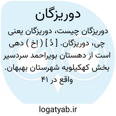 دوریزگان. [ دُ ] ( اِخ ) دهی است از دهستان دشمن زیاری بخش کهکیلویه شهرستان بهبهان. واقع در 9 هزارگزی شمال خاوری قلعه کلات مرکز دهستان و 45هزارگزی شمال خاوری راه شوسه بهبهان به آرو. دارای 180 تن سکنه. آب آن از چشمه و ساکنین آن از طایفه دشمن زیاری هستند. ( از فرهنگ جغرافیایی ایران ج 6 ).