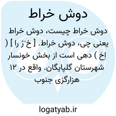 دوش خراط. [ خ َرْ را ] ( اِخ ) دهی است از بخش خونسار شهرستان گلپایگان. واقع در 12 هزارگزی جنوب خونسار و 15 هزارگزی باختر راه شوسه خونسار به اصفهان. جمعیت 275 تن سکنه. آب آن از قنات تأمین می شود. ( از فرهنگ جغرافیایی ایران ج 6 ).