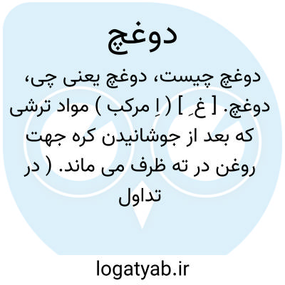 دوغچ. [ غ ِ ] ( اِ مرکب ) مواد ترشی که بعد از جوشانیدن کره جهت روغن در ته ظرف می ماند. ( در تداول گناباد خراسان ). ( یادداشت محمد پروین گنابادی ). دوغو. رجوع به دوغو شود.