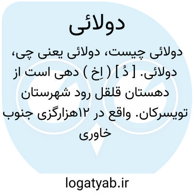 دولائی. [ دُ ] ( اِخ ) دهی است از دهستان قلقل رود شهرستان تویسرکان. واقع در 12هزارگزی جنوب خاوری تویسرکان کنار راه تویسرکان به ملایر با 104 تن سکنه. آب آن ازچشمه ای است که از گردنه سرابی سرچشمه می گیرد و راه آن اتومبیل رو است. ( از فرهنگ جغرافیایی ایران ج 5 ).