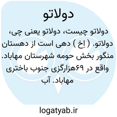دولاتو. ( اِخ ) دهی است از دهستان منگور بخش حومه شهرستان مهاباد. واقع در 69هزارگزی جنوب باختری مهاباد. آب آن از رودخانه بارین آباد و چشمه می باشد. سکنه آن 211 تن و راه آن اتومبیل رو است. ( از فرهنگ جغرافیایی ایران ج 4 ).