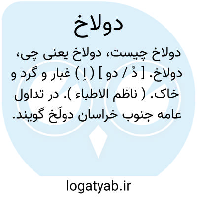 لغت نامه دهخدا دولاخ. [ دُ / دو ] ( اِ ) غبار و گرد و خاک. ( ناظم الاطباء ). در تداول عامه جنوب خراسان دولَخ گویند.