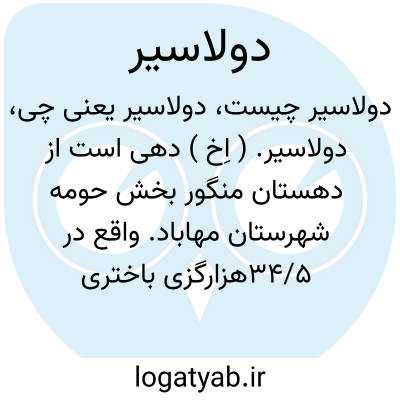 دولاسیر. ( اِخ ) دهی است از دهستان منگور بخش حومه شهرستان مهاباد. واقع در 34/5هزارگزی باختری مهاباد. آب آن از رودخانه بادین آباد.سکنه آن 118 تن. ( از فرهنگ جغرافیایی ایران ج 4 ).
