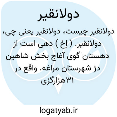 دولانقیر. ( اِخ ) دهی است از دهستان گوی آغاج بخش شاهین دژ شهرستان مراغه. واقع در 31هزارگزی جنوب خاوری شاهین دژ. آب آن از چشمه می باشد. سکنه آن 193 تن است. ( از فرهنگ جغرافیایی ایران ج 4 ).
