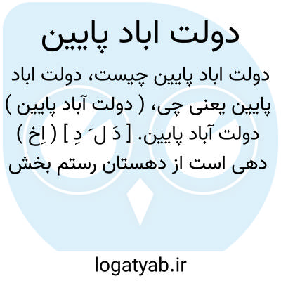 ( دولت آباد پایین ) دولت آباد پایین. [ دَ ل َ دِ ] ( اِخ ) دهی است از دهستان رستم بخش فهلیان و ممسنی شهرستان کازرون با 100 تن سکنه. آب آن از رودخانه فهلیان و راه آن مالرو است. ( از فرهنگ جغرافیایی ایران ج 7 ).