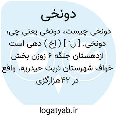 دونخی. [ ن َ ] ( اِخ ) دهی است ازدهستان جلگه 6 زوزن بخش خواف شهرستان تربت حیدریه. واقع در 42هزارگزی جنوب باختری رود با 149 تن سکنه. آب آن از قنات است. ( از فرهنگ جغرافیایی ایران ج 9 ).