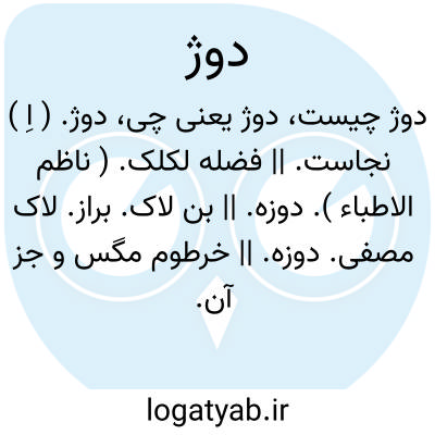 دوژ. ( اِ ) نجاست. || فضله لکلک. ( ناظم الاطباء ). دوزه. || بن لاک. براز. لاک مصفی. دوزه. || خرطوم مگس و جز آن. ( ناظم الاطباء ).