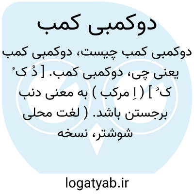 دوکمبی کمب. [ دُ ک ُ ک ُ ] ( اِ مرکب ) به معنی دنب برجستن باشد. ( لغت محلی شوشتر، نسخه خطی کتابخانه ٔمؤلف ). || دستاری را گویند که از دو طرف سرهای آن را بر پس سر اندازند. ( لغت محلی شوشتر ).