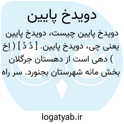 دویدخ پایین. [ دُ دُ ] ( اِخ ) دهی است از دهستان جرگلان بخش مانه شهرستان بجنورد. سر راه شوسه عمومی بجنورد به حصارچه. دارای 100 تن سکنه است. آب آن از رودخانه است. ( از فرهنگ جغرافیایی ایران ج 9 ).