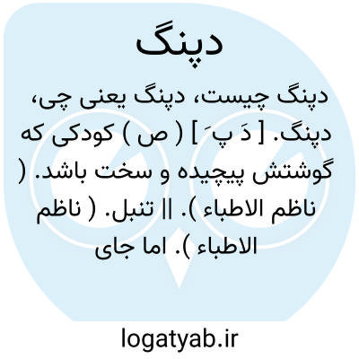 دپنگ. [ دَ پ َ ] ( ص ) کودکی که گوشتش پیچیده و سخت باشد. ( ناظم الاطباء ). || تنبل. ( ناظم الاطباء ). اما جای دیگری این لغت دیده نشد.