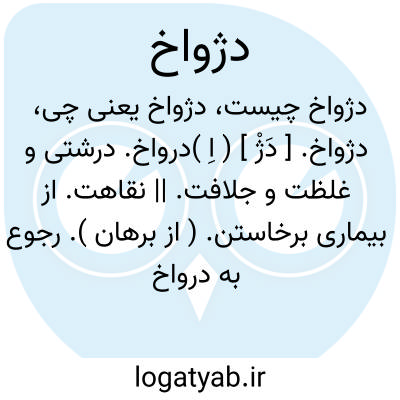 لغت نامه دهخدا دژواخ. [ دَژْ ] ( اِ )درواخ. درشتی و غلظت و جلافت. || نقاهت. از بیماری برخاستن. ( از برهان ). رجوع به درواخ شود.