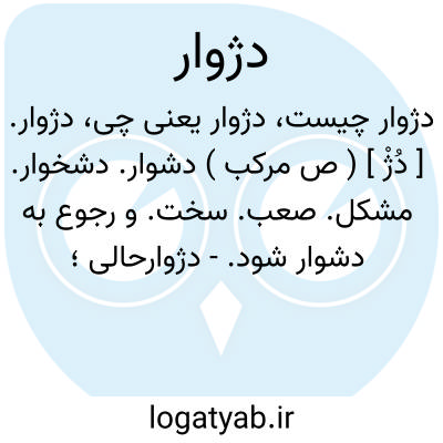 دژوار. [ دُژْ ] ( ص مرکب ) دشوار. دشخوار. مشکل. صعب. سخت. و رجوع به دشوار شود.