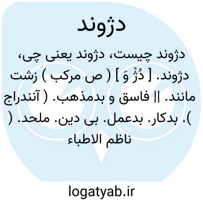 دژوند. [ دُژْ وَ ] ( ص مرکب ) زشت مانند. || فاسق و بدمذهب. ( آنندراج ). بدکار. بدعمل. بی دین. ملحد. ( ناظم الاطباء ):