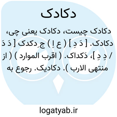 دکادک. [ دَ دِ ] ( ع اِ ) ج ِدکدک [ دَ دَ / دِ دِ ]، دَکداک. ( اقرب الموارد ) ( از منتهی الارب ). دکادیک. رجوع به دکدک و دکداک شود.