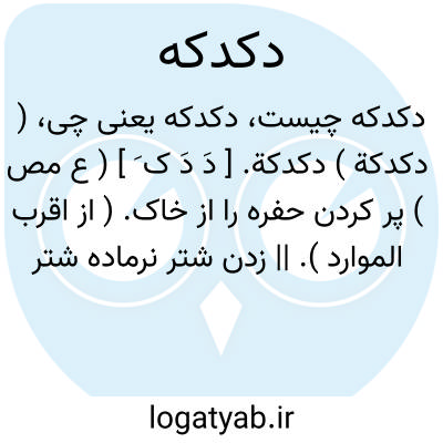 ( دکدکة ) دکدکة. [ دَ دَ ک َ ] ( ع مص ) پر کردن حفره را از خاک. ( از اقرب الموارد ). || زدن شتر نرماده شتر را. ( از ذیل اقرب الموارد، بنقل از تاج ).