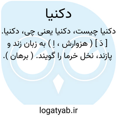 دکنیا. [ دَ ] ( هزوارش، اِ ) به زبان زند و پازند، نخل خرما را گویند. ( برهان ).