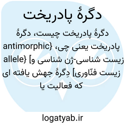 {antimorphic allele} [زیست شناسی-ژن شناسی و زیست فنّاوری] دِگرۀ جهش یافته ای که فعالیت یا فراوردۀ آن، فعالیت یا فراوردۀ طبیعی را مختل یا خنثی می کند متـ. پادریخت2 antimorph2 دِگرۀ بارز منفی dominant negative allele