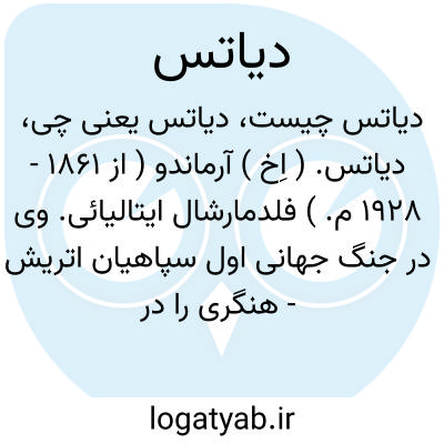 دیاتس. ( اِخ ) آرماندو ( از 1861 - 1928 م. ) فلدمارشال ایتالیائی. وی در جنگ جهانی اول سپاهیان اتریش - هنگری را در ویتوریوونتو شکست داد و در 3 نوامبر 1918 م. بر اساس تسلیم بلاشرط اتریش - هنگری پیمان ترک مخاصمه منعقد کرد. ( دائرة المعارف فارسی ).