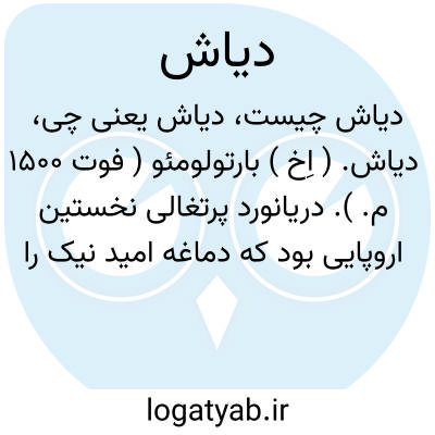 دیاش. ( اِخ ) بارتولومئو ( فوت 1500 م. ). دریانورد پرتغالی نخستین اروپایی بود که دماغه امید نیک را دور زد ( 1488 م. ) و این مسافرت او راه دریایی هند را باز کرد، با «کابرال » در مسافرتی که منجر به کشف برزیل گردید همراه بود ولی در راه هلاک شد. ( دائرة المعارف فارسی ).