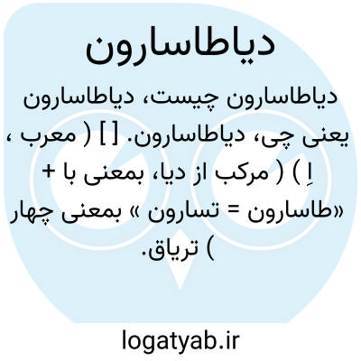لغت نامه دهخدا دیاطاسارون. [ ] ( معرب، اِ ) ( مرکب از دیا، بمعنی با + «طاسارون = تسارون » بمعنی چهار ) تریاق. معجون الاربعة. ( یادداشت مؤلف ).