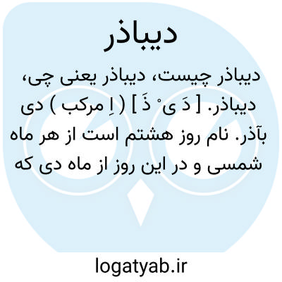دیباذر. [ دَ ی ْ ذَ ] ( اِ مرکب ) دی بآذر. نام روز هشتم است از هر ماه شمسی و در این روز از ماه دی که دیماه باشد فارسیان عید کنند و جشن سازند بنابر قاعده کلیه که میان ایشان معمول است. ( برهان ). نام روز هشتم از ماه و سال شمسی و این روز از ماه دی را عید کنند و جشن مغان باشد و گویند که نیک است در این روز صدقه دادن از بهر تندرستی خود و فرزندان. ( جهانگیری ).نام روز هشتم ست از هر ماه شمسی این روز نیز جشن کنند و صدقه دهند. ( انجمن آرا ) ( آنندراج ):