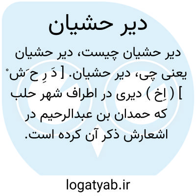 دیر حشیان. [ دَ رِ ح َش ْ ] ( اِخ ) دیری در اطراف شهر حلب که حمدان بن عبدالرحیم در اشعارش ذکر آن کرده است. ( از معجم البلدان ).