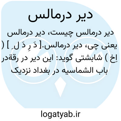 دیر درمالس.[ دَ رِ دَ ل ِ ] ( اِخ ) شابشتی گوید: این دیر در رقةدر باب الشماسیه در بغداد نزدیک دارالمعزیة است و آن جای با صفائی است درختان بسیار و بوستانها دارد و در نزدیکی آن بیشه ای از نی است. ( از معجم البلدان ).