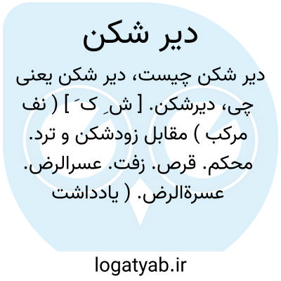 دیرشکن. [ ش ِ ک َ ] ( نف مرکب ) مقابل زودشکن و ترد. محکم. قرص. زفت. عسرالرض. عسرةالرض. ( یادداشت مؤلف ). که زود شکسته نشود.