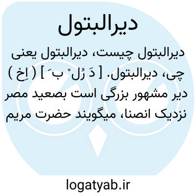 دیرالبتول. [ دَ رُل ْ ب َ ] ( اِخ ) دیر مشهور بزرگی است بصعید مصر نزدیک انصنا، میگویند حضرت مریم ( ع ) وارد آن شده است. ( از معجم البلدان ).
