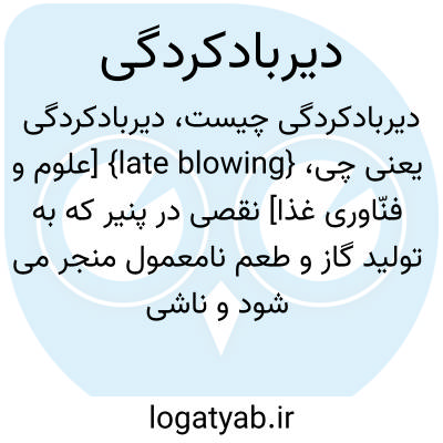 {late blowing} [علوم و فنّاوری غذا] نقصی در پنیر که به تولید گاز و طعم نامعمول منجر می شود و ناشی از تخمیر با باکتری کلُستریدیوم تیروبوتیریکوم است متـ. بادکردگی blowing