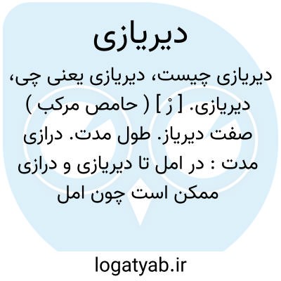 دیریازی. [ رْ ] ( حامص مرکب ) صفت دیریاز. طول مدت. درازی مدت: