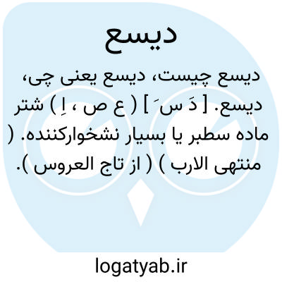 دیسع. [ دَ س َ ] ( ع ص، اِ ) شتر ماده سطبر یا بسیار نشخوارکننده. ( منتهی الارب ) ( از تاج العروس ).