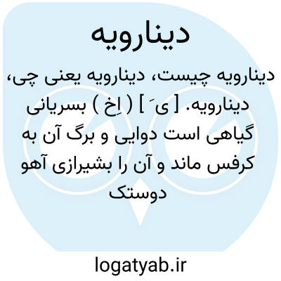 دینارویه. [ ی َ ] ( اِخ ) بسریانی گیاهی است دوایی و برگ آن به کرفس ماند و آن را بشیرازی آهو دوستک گویند. ( آنندراج ) ( انجمن آرا ) ( برهان ). زوفرا. حزا. ( مفردات ابن البیطار ). انیسون بری.