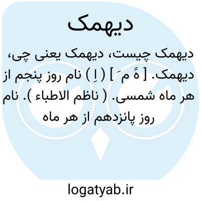 دیهمک. [ هََ م َ ] ( اِ ) نام روز پنجم از هر ماه شمسی. ( ناظم الاطباء ). نام روز پانزدهم از هر ماه شمسی. ( آنندراج ). اما ظاهراً دگرگون شده کلمه دی بمهر باشد.