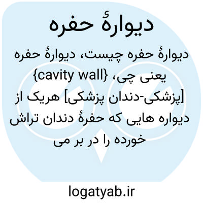{cavity wall} [پزشکی-دندان پزشکی] هریک از دیواره هایی که حفرۀ دندان تراش خورده را در بر می گیرد و براساس سطحی از دندان که در مقابل آن قرار گرفته است نام گذاری می شود