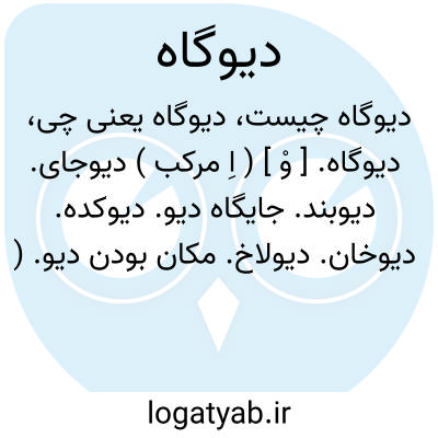دیوگاه. [ وْ ] ( اِ مرکب ) دیوجای. دیوبند. جایگاه دیو. دیوکده. دیوخان. دیولاخ. مکان بودن دیو. ( آنندراج ). || کنایه از دنیا. ( آنندراج ):