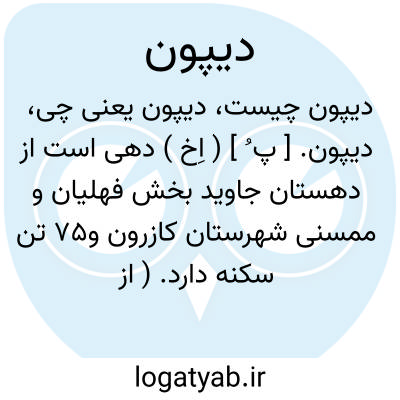 دیپون. [ پ ُ ] ( اِخ ) دهی است از دهستان جاوید بخش فهلیان و ممسنی شهرستان کازرون و75 تن سکنه دارد. ( از فرهنگ جغرافیایی ایران ج 7 ).