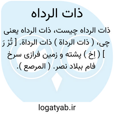 ( ذات الرداة ) ذات الرداة. [ تُرْ رَ ] ( اِخ ) پشته و زمین فرازی سرخ فام ببلاد نصر. ( المرصع ).