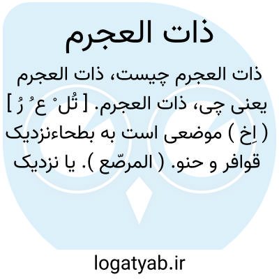 ذات العجرم. [ تُل ْ ع ُ رُ ] ( اِخ ) موضعی است به بطحاءنزدیک قوافر و حنو. ( المرصّع ). یا نزدیک ذوقار. رجوع به عقدالفرید ج 6 ص 111 و معرب جوالیقی ص 77 شود.