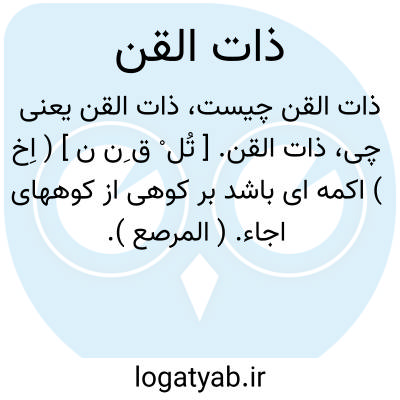 ذات القن. [ تُل ْ ق ِن ن ] ( اِخ ) اکمه ای باشد بر کوهی از کوههای اجاء. ( المرصع ).