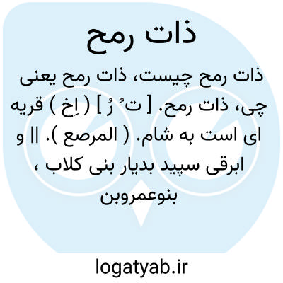 ذات رمح. [ ت ُ رُ ] ( اِخ ) قریه ای است به شام. ( المرصع ). || و ابرقی سپید بدیار بنی کلاب، بنوعمروبن ربیعة را. ( المرصع ) ( معجم البلدان ).