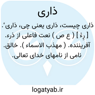 ذاری ٔ. [ رِءْ ] ( ع ص ) نعت فاعلی از ذرء. آفریننده. ( مهذب الاسماء ). خالق. نامی از نامهای خدای تعالی.