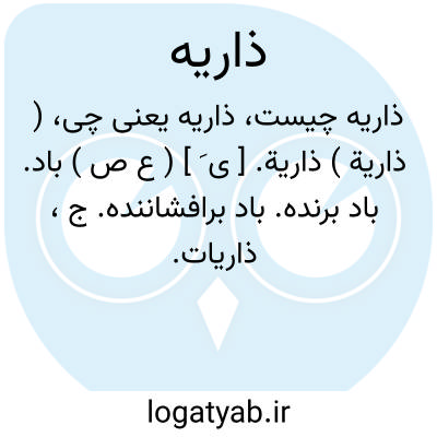 ( ذاریة ) ذاریة. [ ی َ ] ( ع ص ) باد. باد برنده. باد برافشاننده. ج، ذاریات.