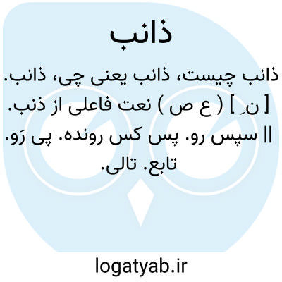 ذانب. [ ن ِ ] ( ع ص ) نعت فاعلی از ذنب. || سپس رو. پس کس رونده. پی رَو. تابع. تالی.