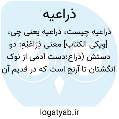 [ویکی الکتاب] معنی ذِرَاعَیْهِ: دو دستش (ذراع:دست آدمی از نوک انگشتان تا آرنج است که در قدیم آن را مقیاس طول میگرفتند.هر ذرع پنجاه تا هفتاد سانتیمتر است )