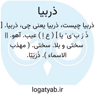 ذربیا. [ ذَ رَ ب َی ْ یا ] ( ع اِ ) عیب. آهو. || سختی و بلا. سختی. ( مهذب الاسماء ). ذَرَیَبّا.