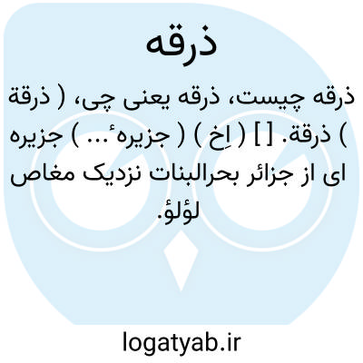 ( ذرقة ) ذرقة. [ ] ( اِخ ) ( جزیره ٔ... ) جزیره ای از جزائر بحرالبنات نزدیک مغاص لؤلؤ.